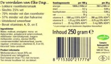 Laatst kocht mijn echtgenote een kuipje van het merk Botergoud in de variant van Elke Dag. Campina is de producent van al dit lekkers. Het betrof een roomboterproduct waaraan in royale mate water werd toegevoegd. Het smeerseltje bevatte slechts 25 melkvet schreeuwde het etiket mij toe. De R&D jongens van Campina zijn erg vlijtig geweest…