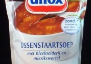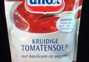 In een pittige bui toch weer eens een zak kruidige tomatensoep met basilicum en oregano open geknipt. Inhoud 570g voor ruim twee kommen. Net voldoende voor een persoon dus…Mij. De achterzijde van het pak bevat naast de wettelijk verplichte informatie ook gewone consumenteninformatie. Dit is wat dit etiket ons toe…